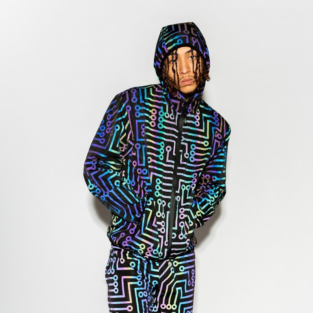 Holographic Jacket Circuit Pattern Reflective Etsy Uk